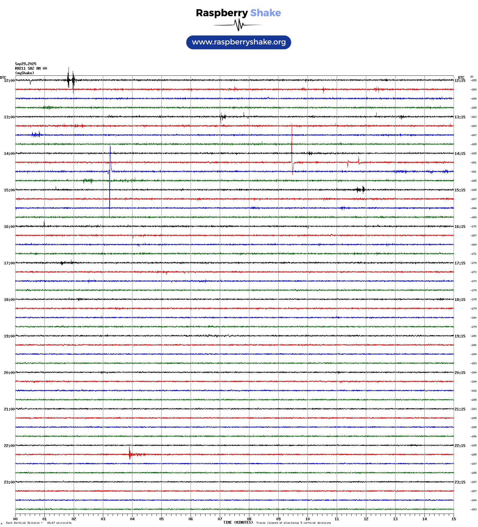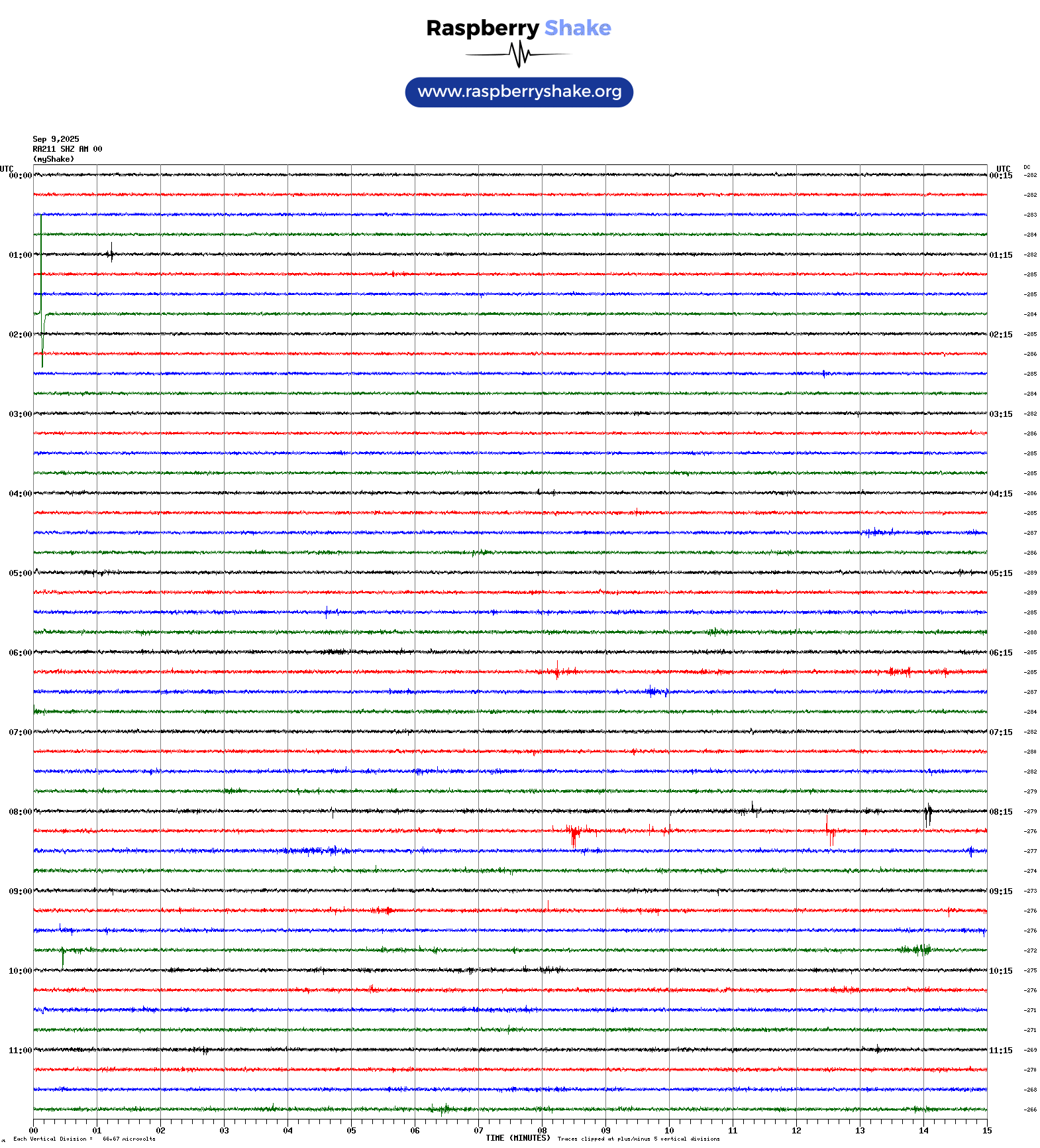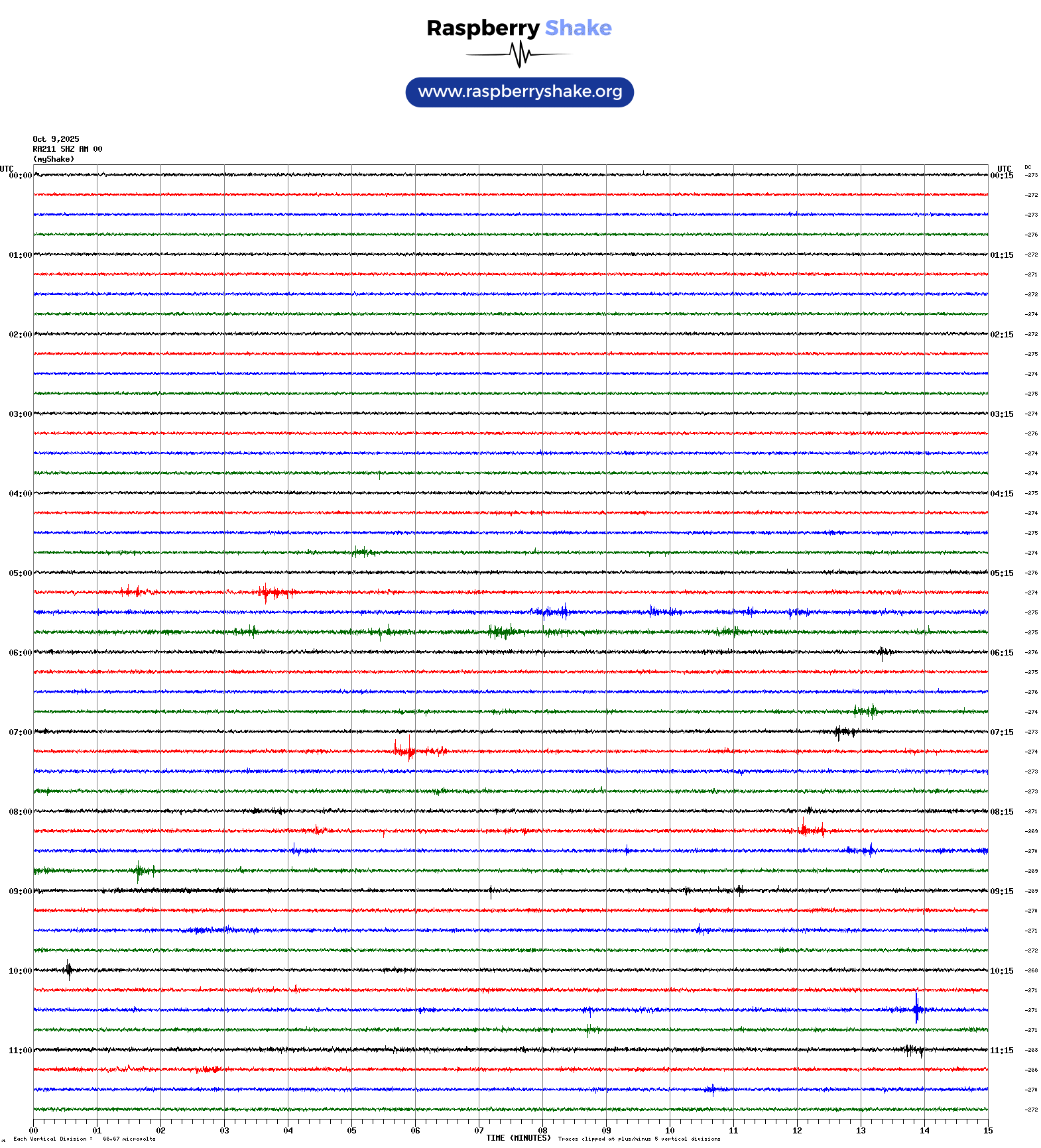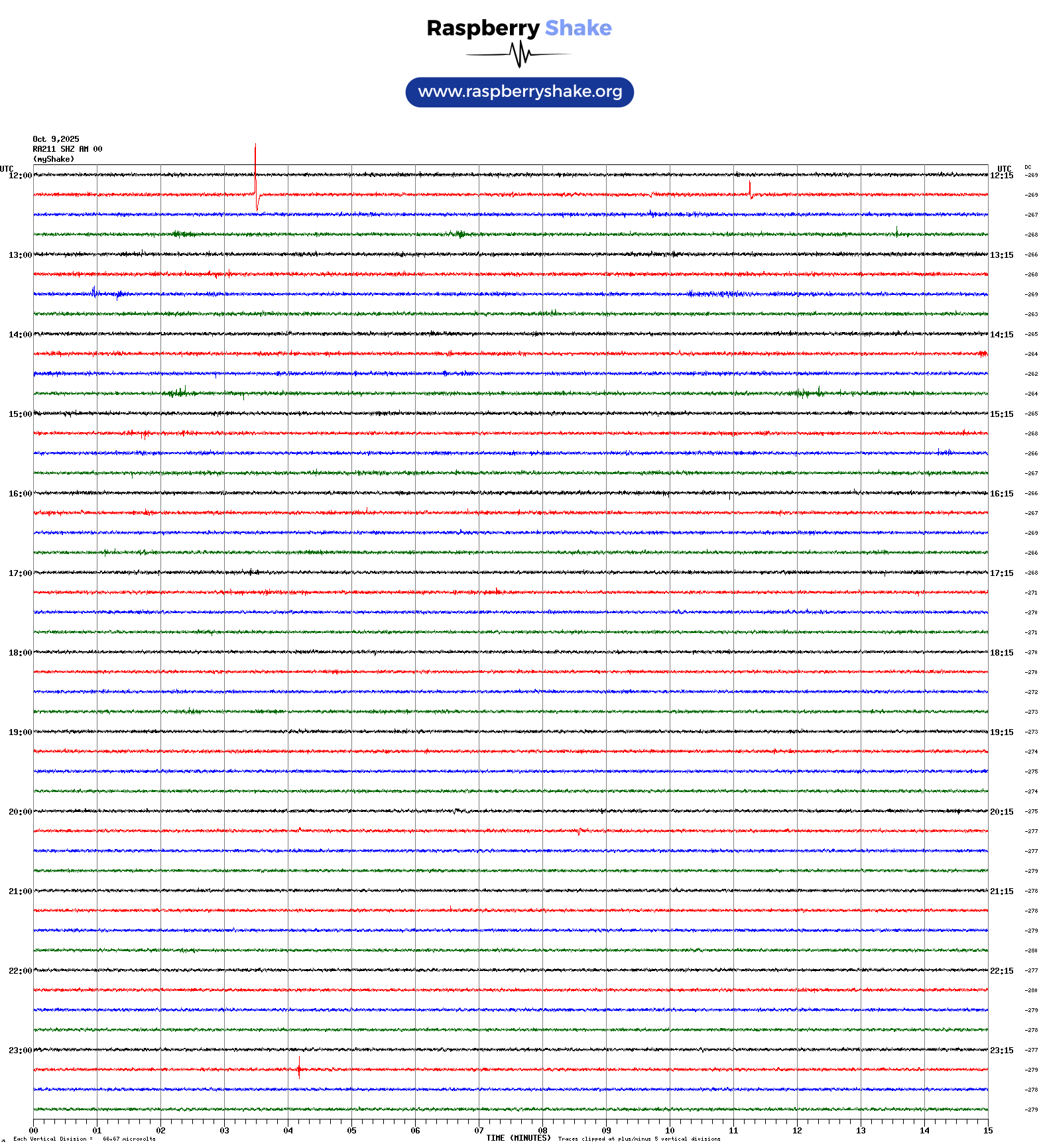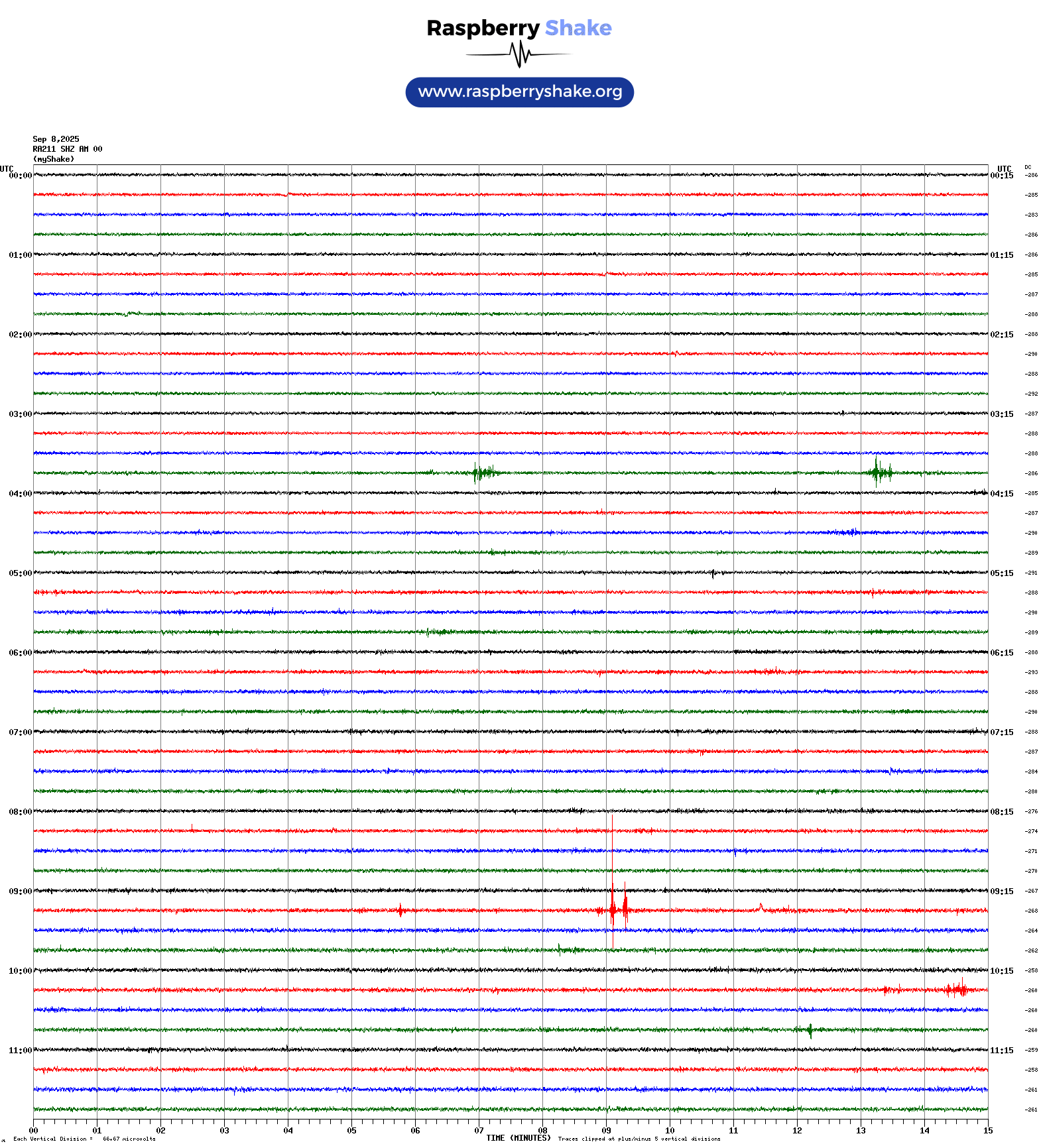 Rechts wird das Seismogramm meines Seismographen Raspberry Shake (RA211) in Naila angezeigt.