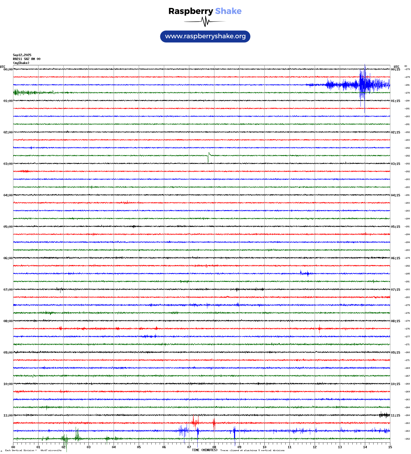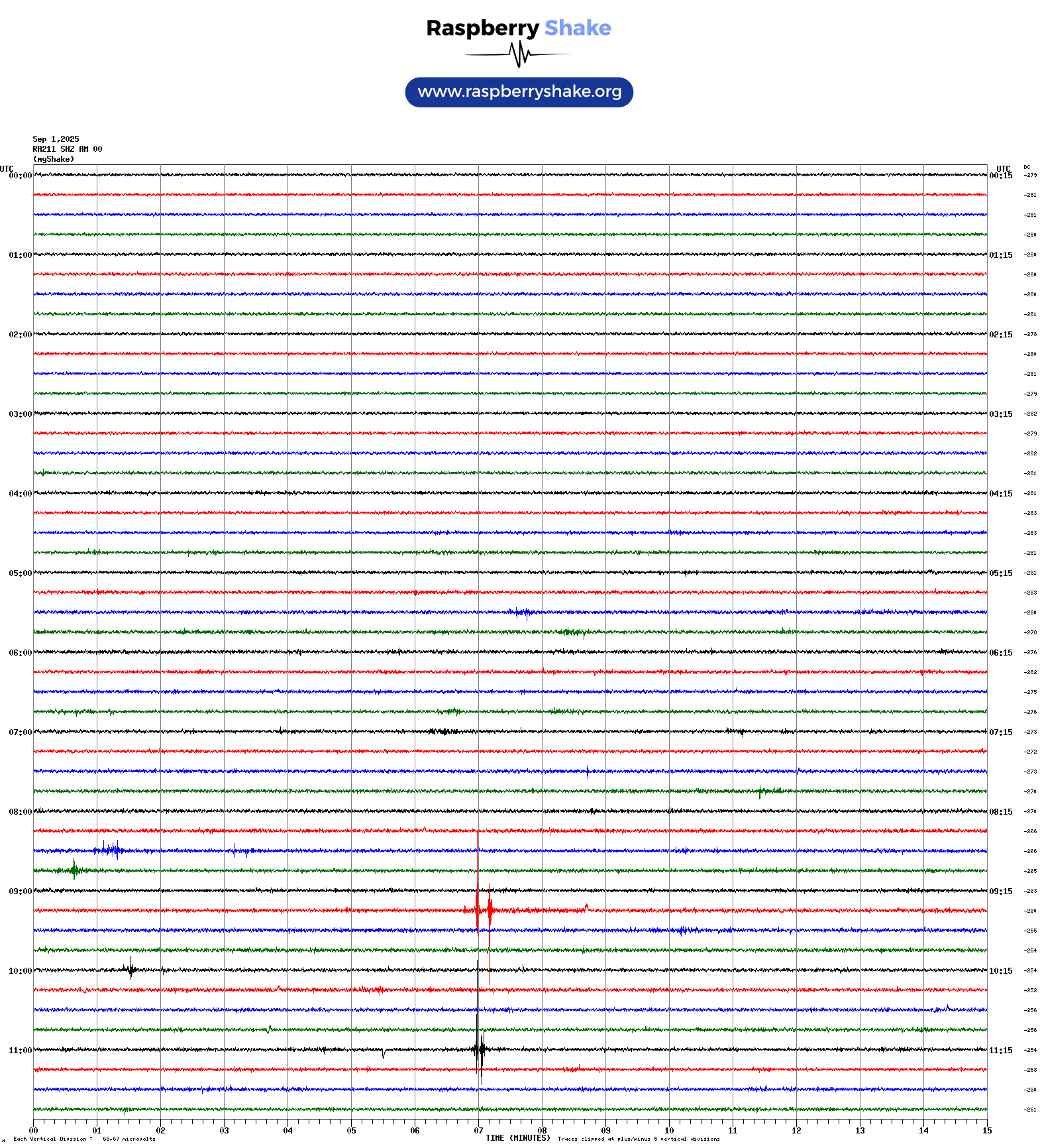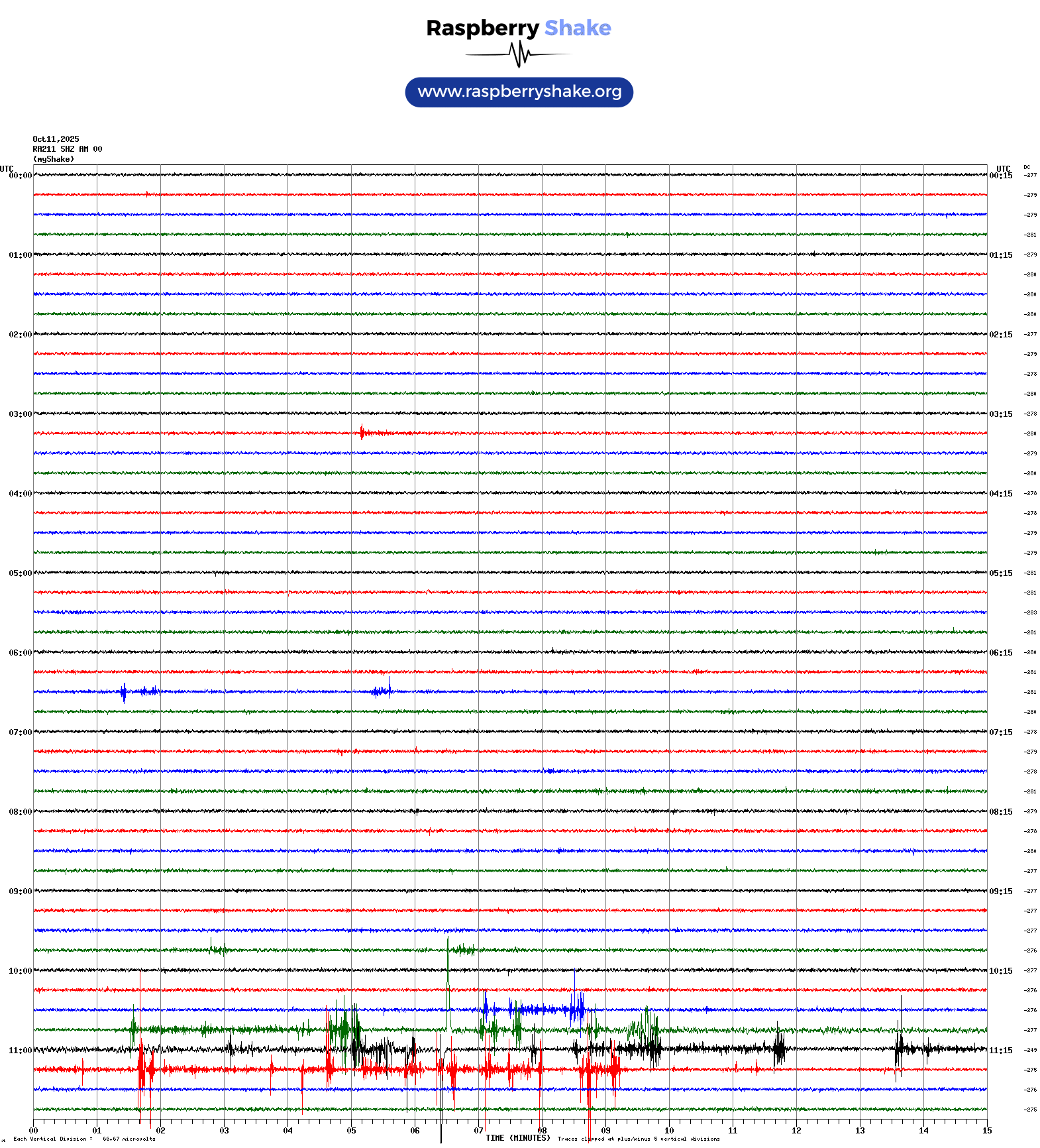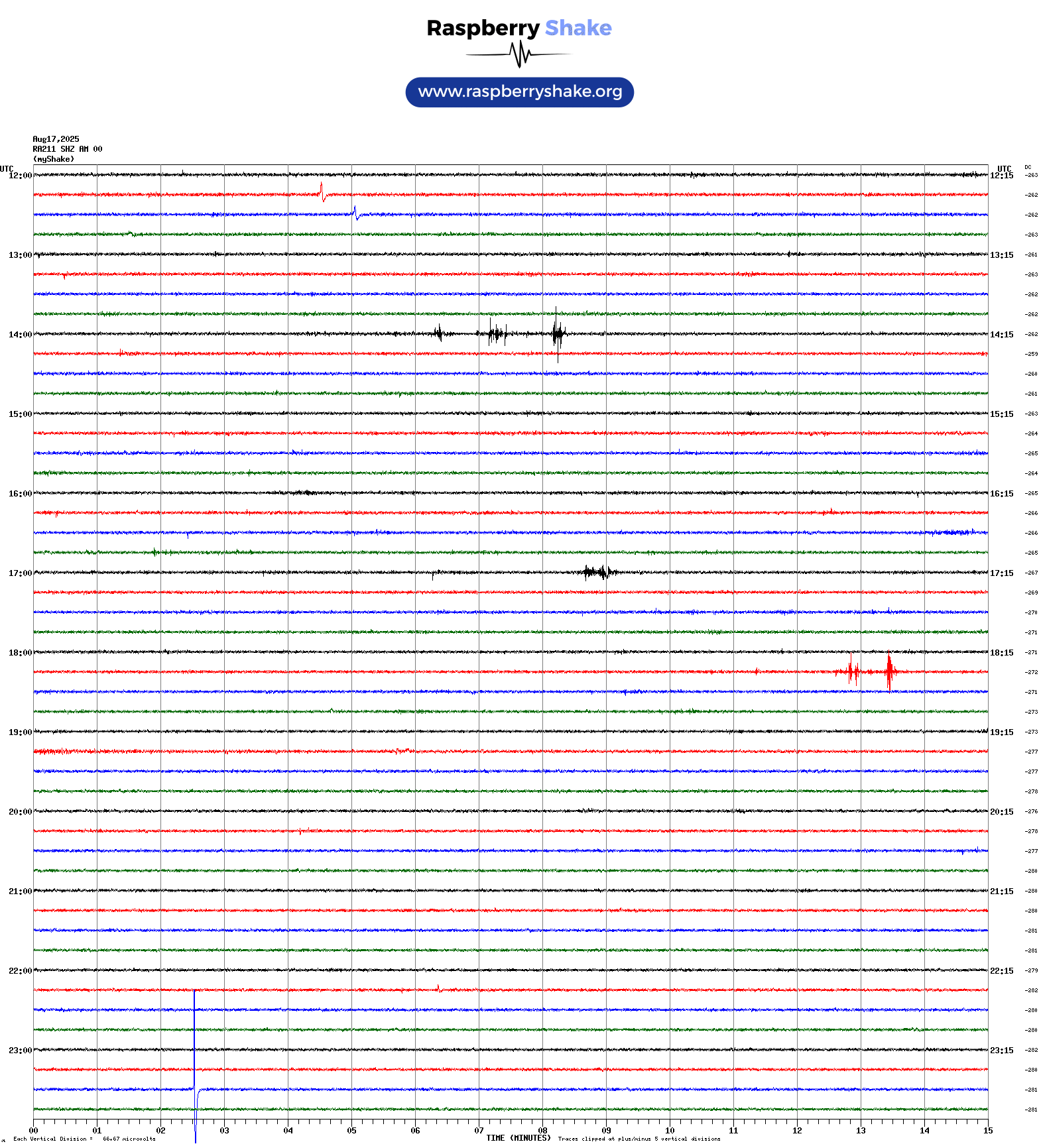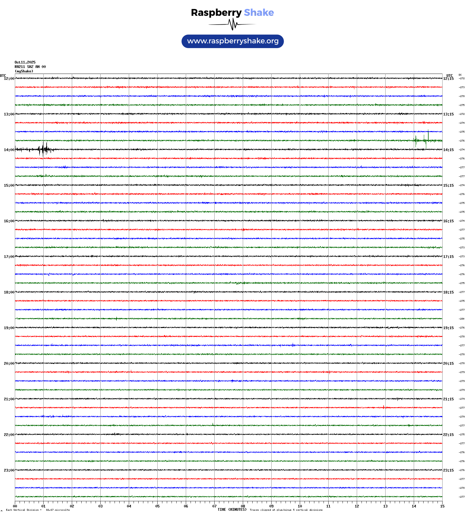 Rechts wird das Seismogramm meines Seismographen Raspberry Shake (RA211) in Naila angezeigt.
